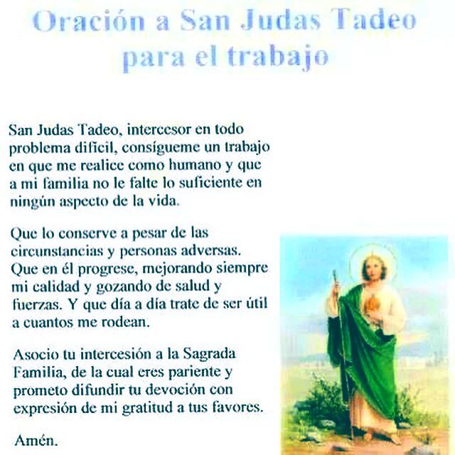 Fe Y Salvacion Video Oracion A San Judas Tadeo Para Conseguir Trabajo Muy Milagrosa San judas tadeo, intercesor en todo problema difcil, consgueme un trabajo en que me realice como humano y que a mi familia no le falte lo suficiente en ningn.